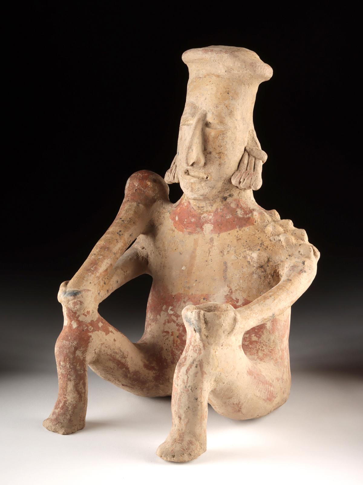 Lot 179, Auction 3/19/2026: Large Jalisco Pottery Seated Male Figure w/ Club