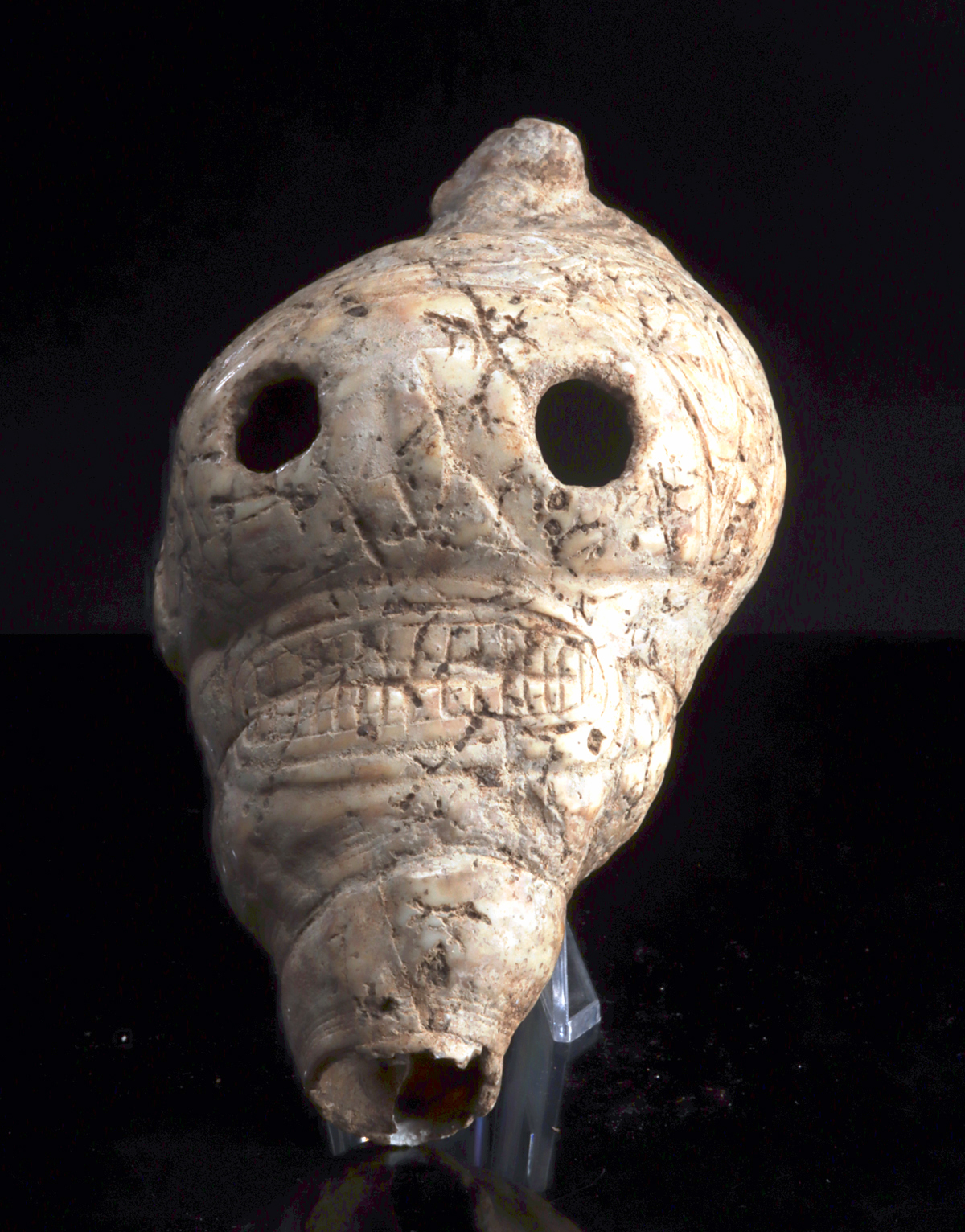 Lot 148, Auction 3/19/2026: Rare Taino Shell, Carved Skull Face Effigy