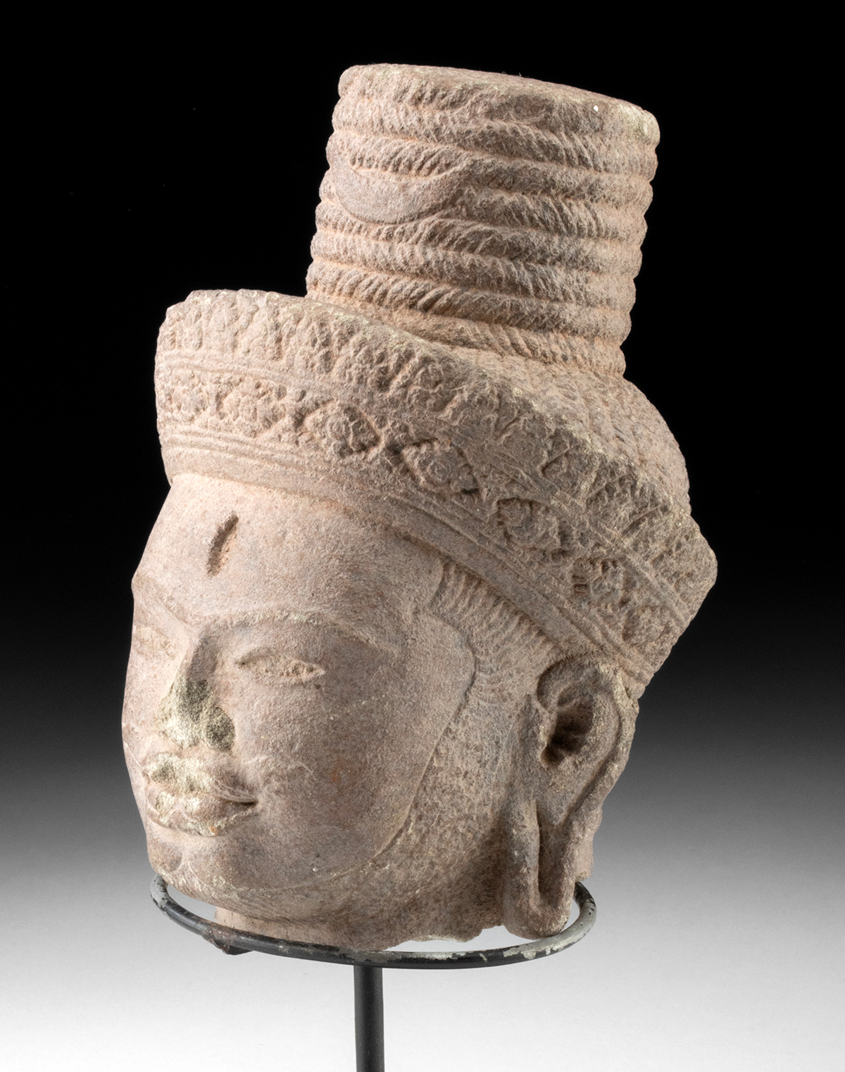 Lot 2, Auction 3/19/2026: Khmer Angkor Red Sandstone Head of Shiva