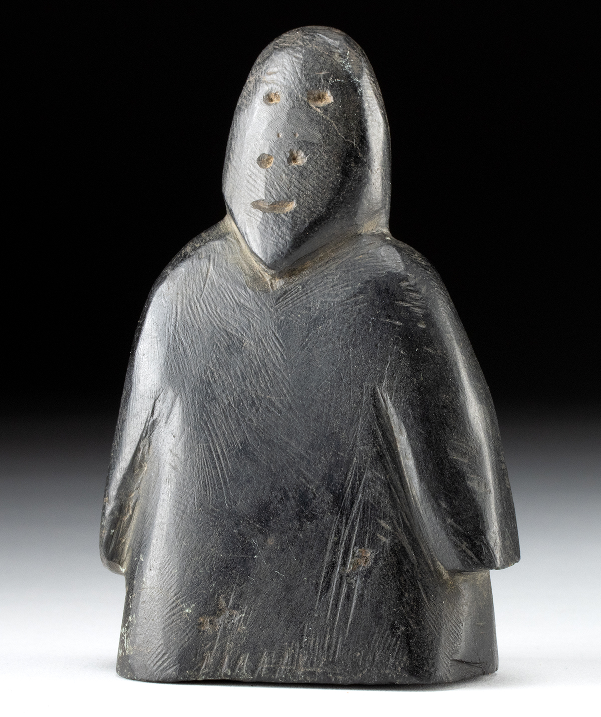 Lot 277, Auction 3/19/2026: Inuit Soapstone Figural Carving, Signed in Inuktitut