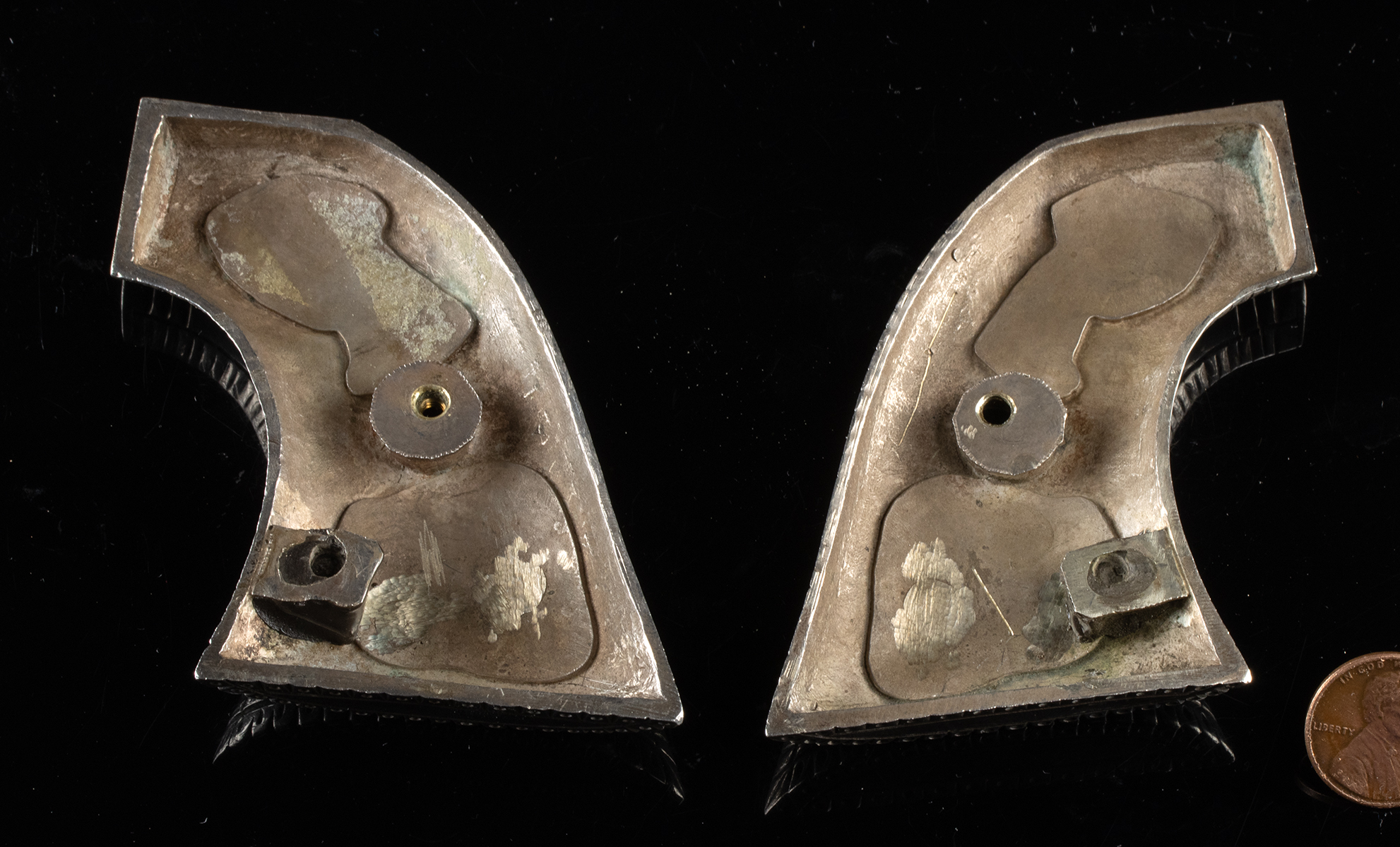 Lot 265, Auction 3/19/2026: Zuni Sterling Silver Kachina Inlay Colt Revolver Grips
