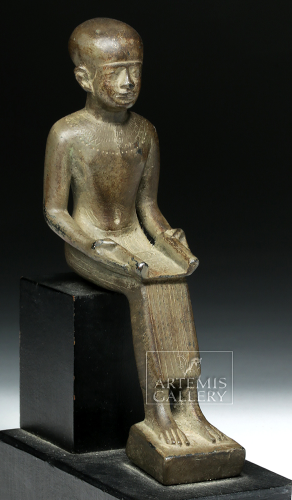 Lot 329a, Auction 3/19/2026: Egyptian Revival Seated Bronze Imhotep Holding Scroll