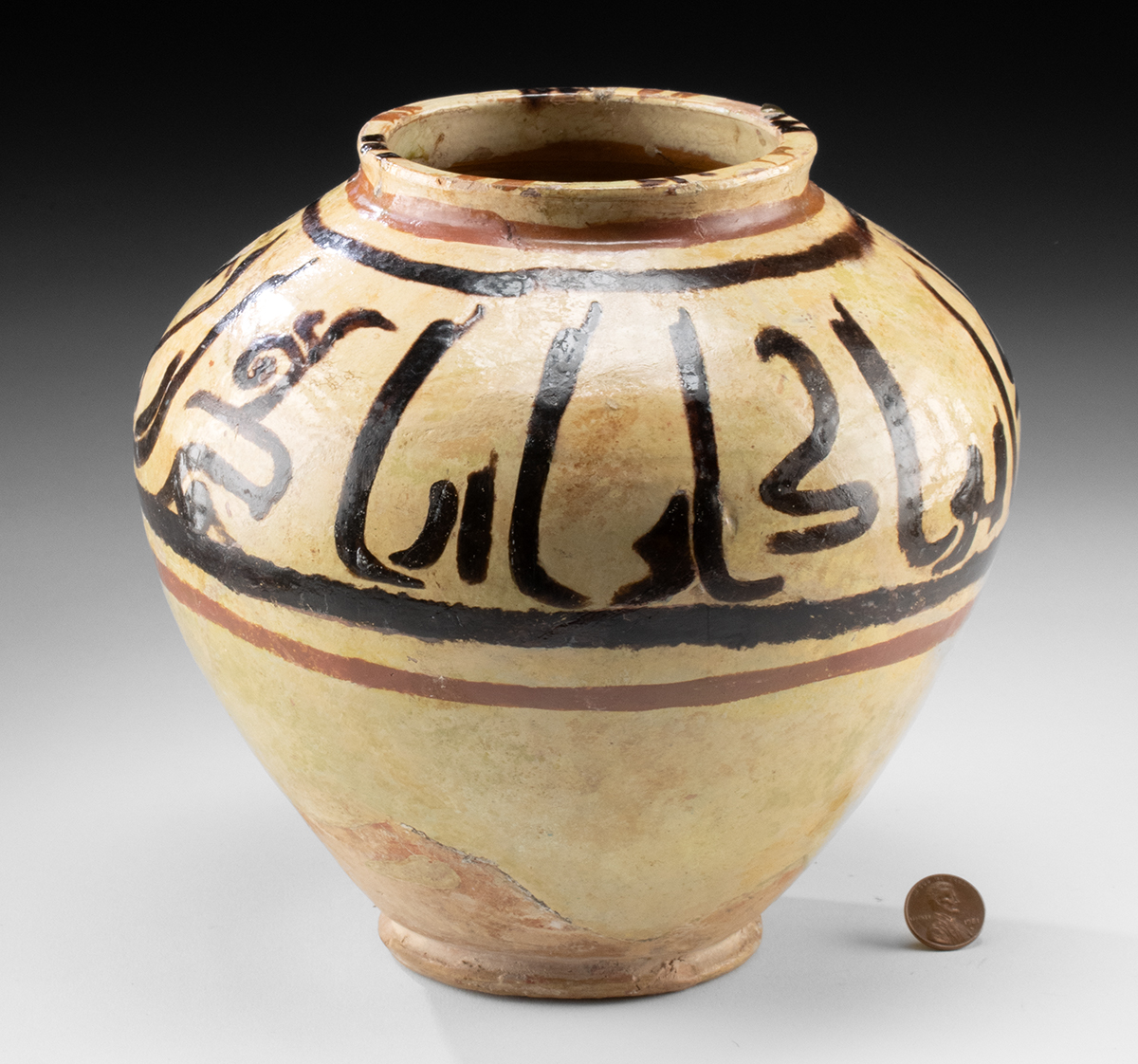 Lot 79a, Auction 3/19/2026: 12th C. Persian Rayy Vessel w/ Bold Kufic Inscription