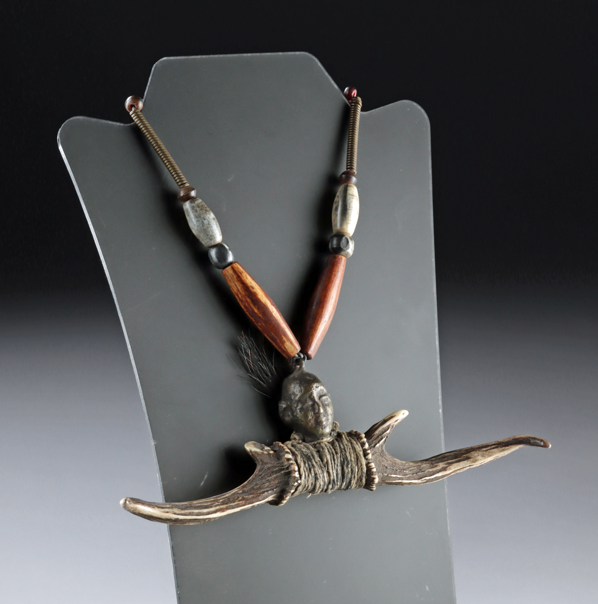 Lot 75a, Auction 3/19/2026: Naga Antler & Brass Trophy Head Pendant Necklace
