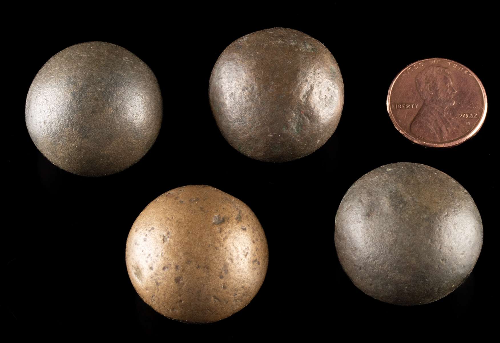 Lot 305, Auction 3/19/2026: Four Spanish Colonial Copper Bola Sling Weights