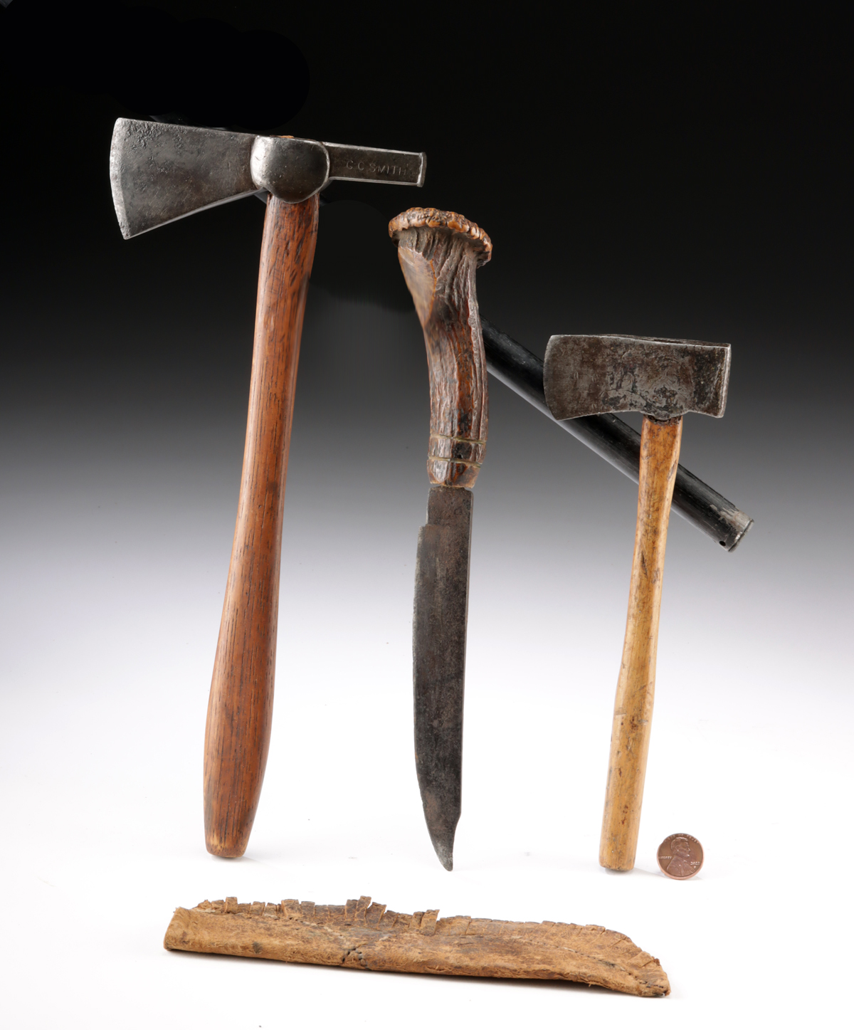Lot 316, Auction 3/19/2026: 19th C. American Hatchets & Antler Handled Knife