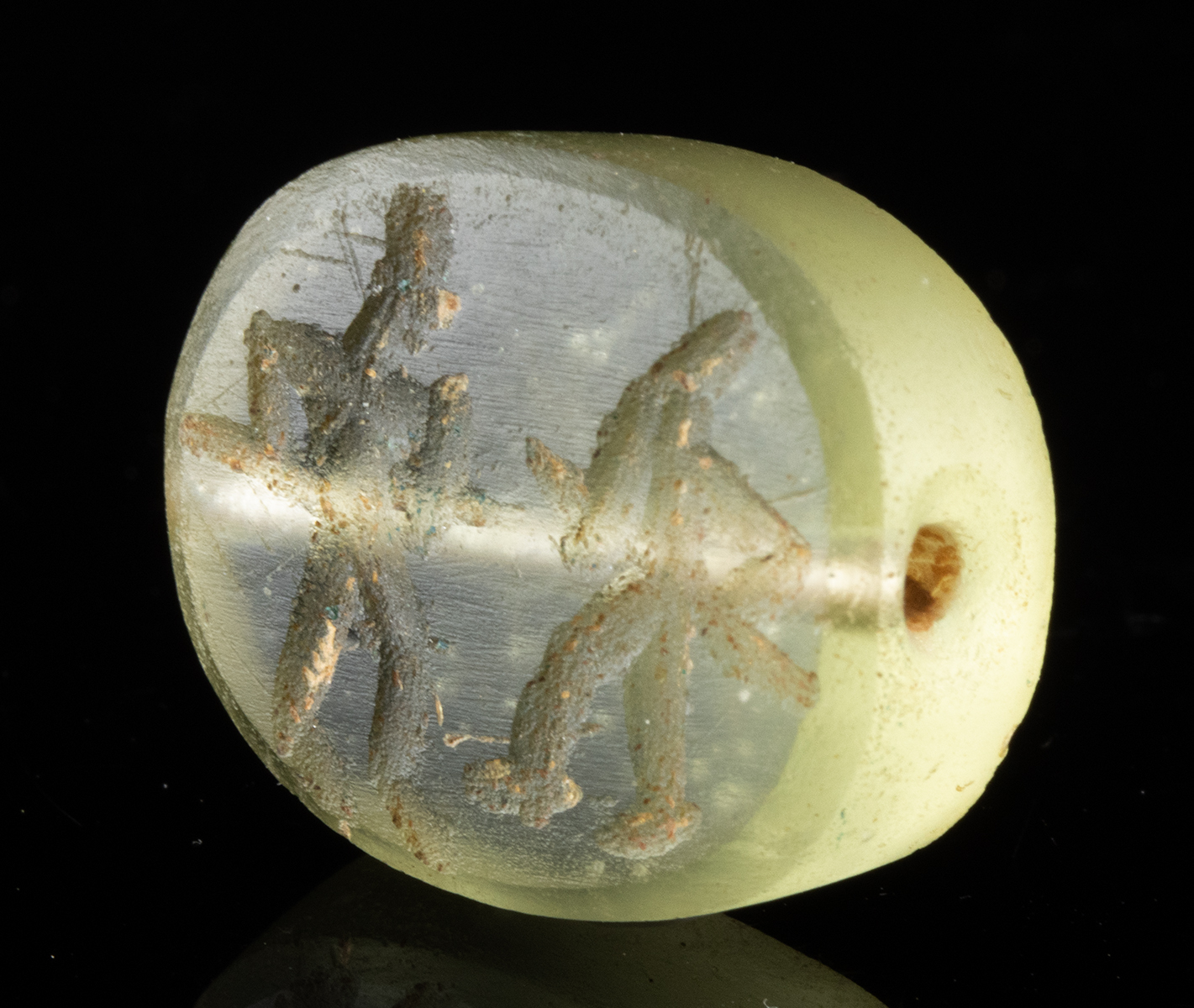 Lot 80, Auction 3/19/2026: Sasanian Glass Stamp Seal with Warrior Combat