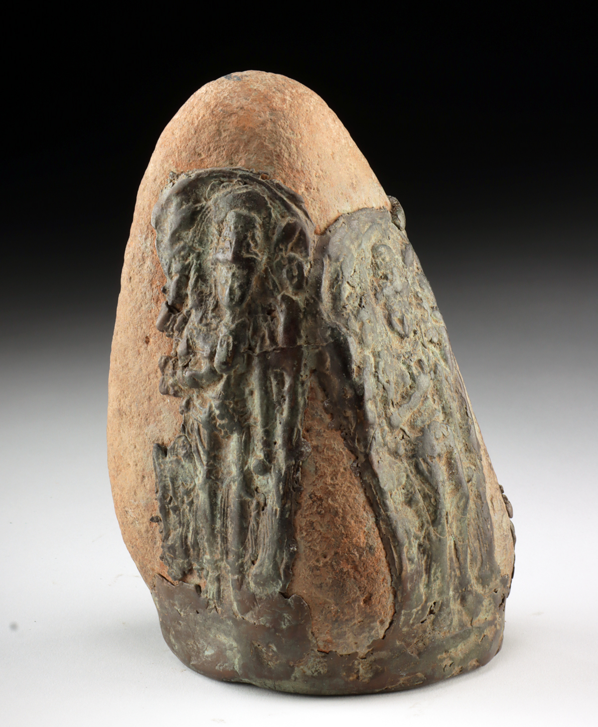 Lot 75, Auction 3/19/2026: Rare Indian Stone Overlaid with Brass Deity Panels
