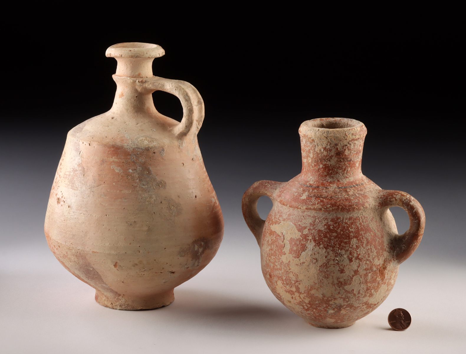 Lot 91, Auction 3/19/2026: Two Holy Land Pottery Vessels – Decanter & Spouted Jug