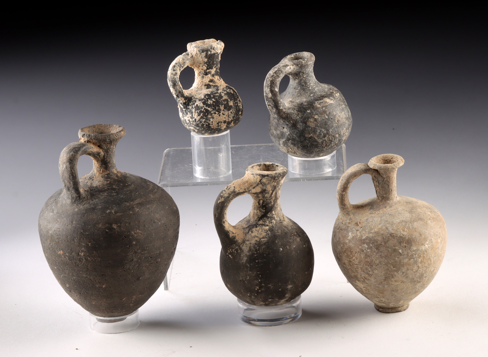 Lot 97, Auction 3/19/2026: Five Ancient Levant / Holyland Pottery Pitchers