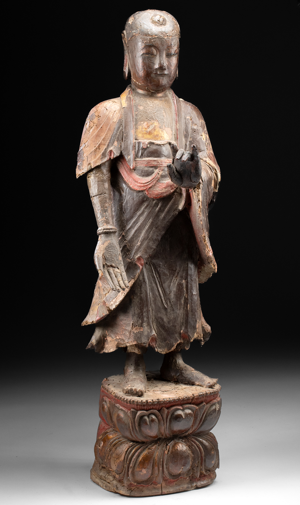 Lot 98, Auction 4/12/2026: 17th C. Chinese Ming Wood Standing Amitabha Buddha