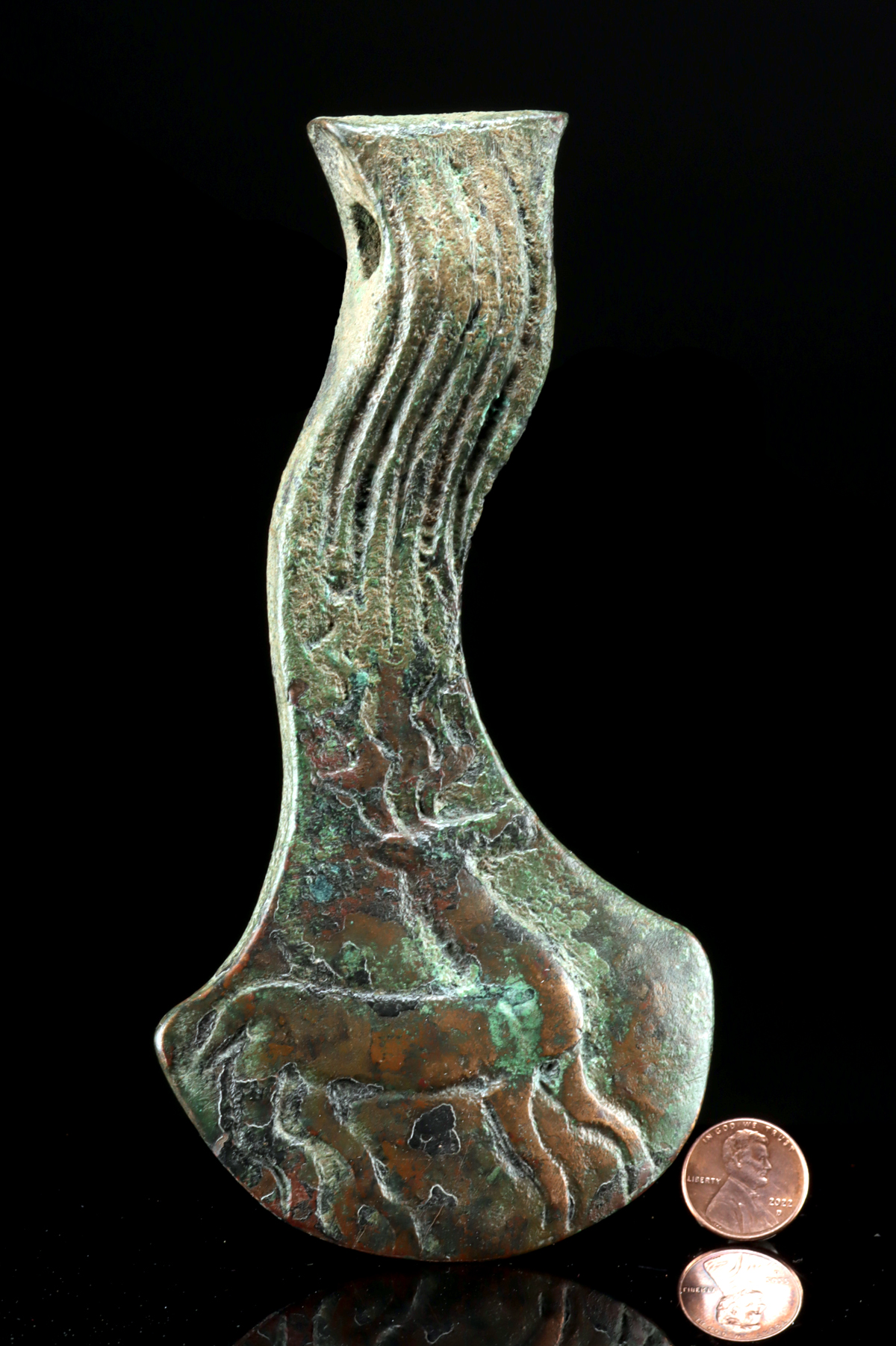 Lot 87, Auction 4/12/2026: Bronze Age Koban Culture Votive Axe w/ Stag Motifs