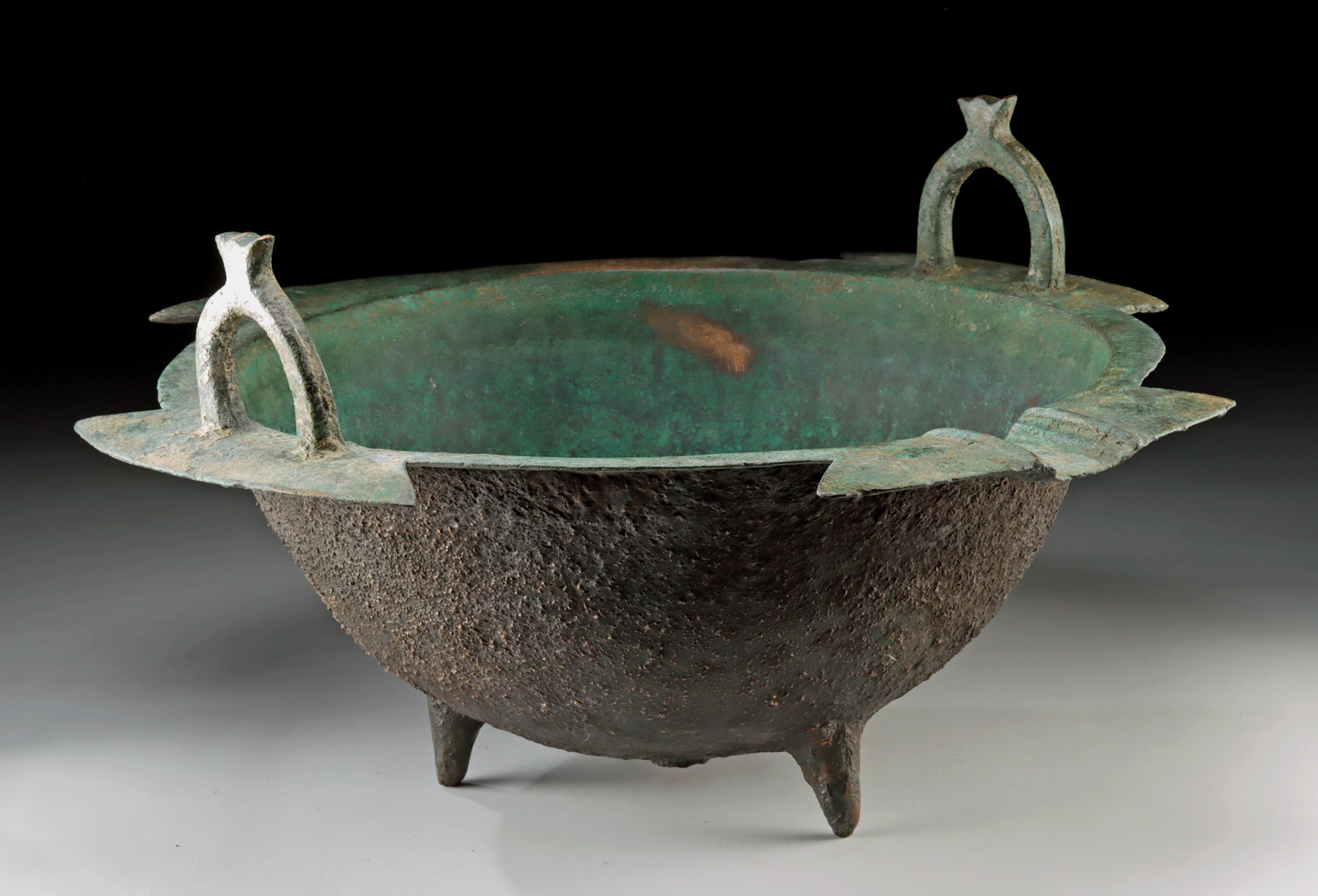 Lot 95, Auction 4/12/2026: Islamic Khorassan Bronze Tripod Cauldron w/ Handles