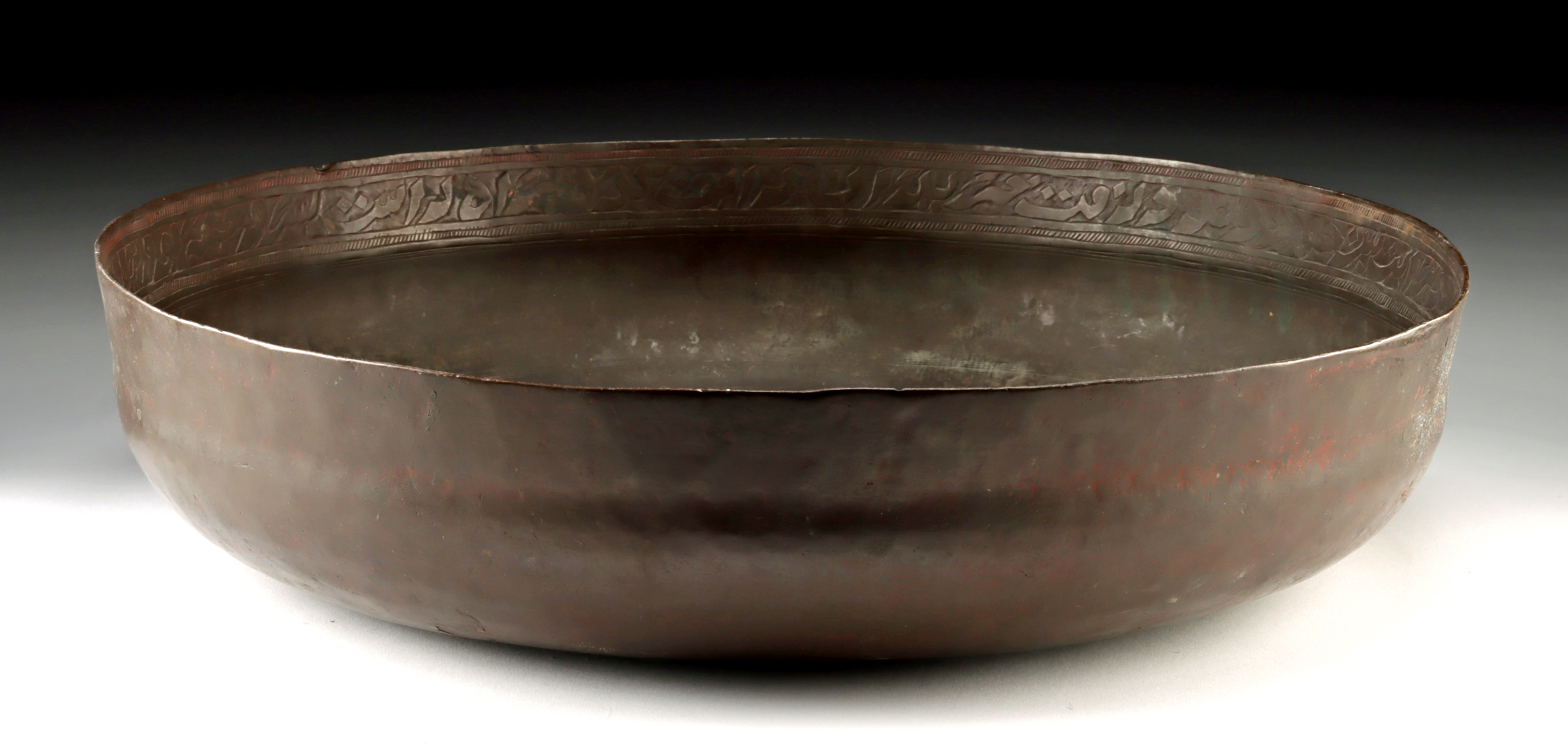 Lot 92, Auction 4/12/2026: Large 19th C. Persian Brass Bowl w/ Arabic Calligraphy