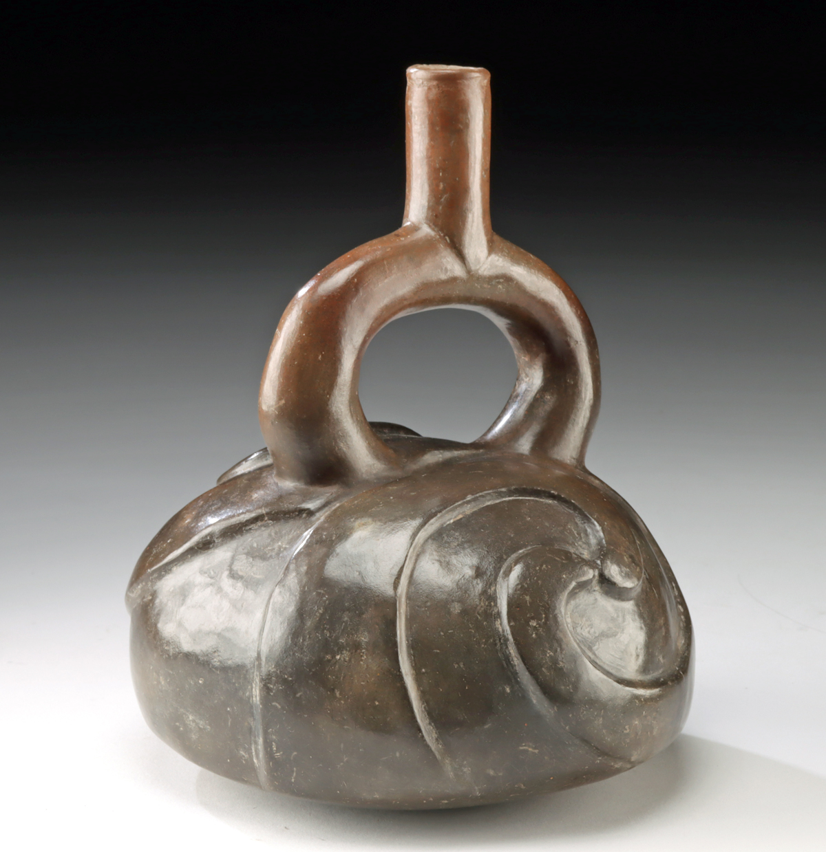 Lot 68d, Auction 4/12/2026: Moche Pottery Stirrup Vessel w/ Swirls – TL Tested