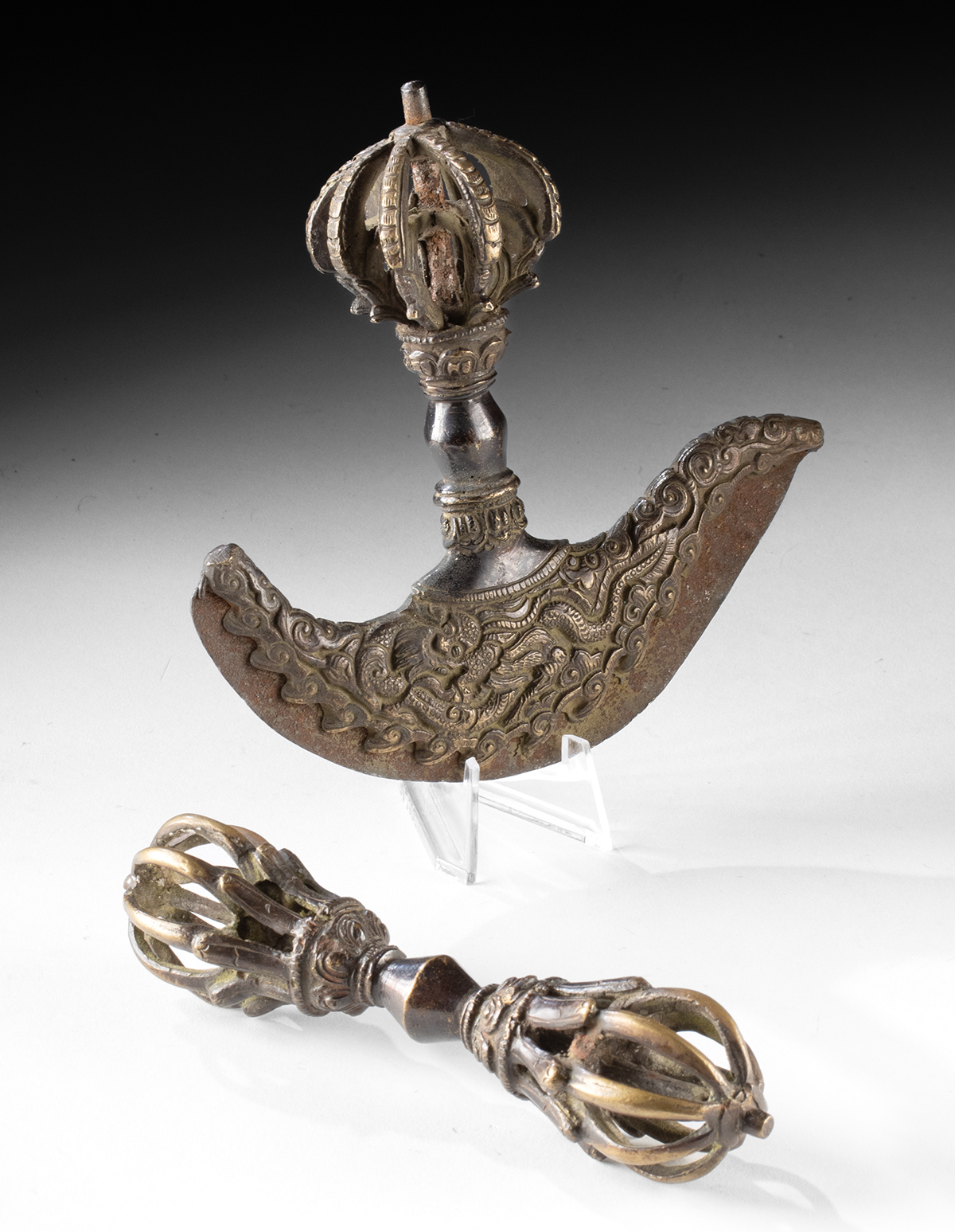 Lot 97d, Auction 4/12/2026: Himalayan Buddhist Ritual Brass Dorje & Kartika Knife