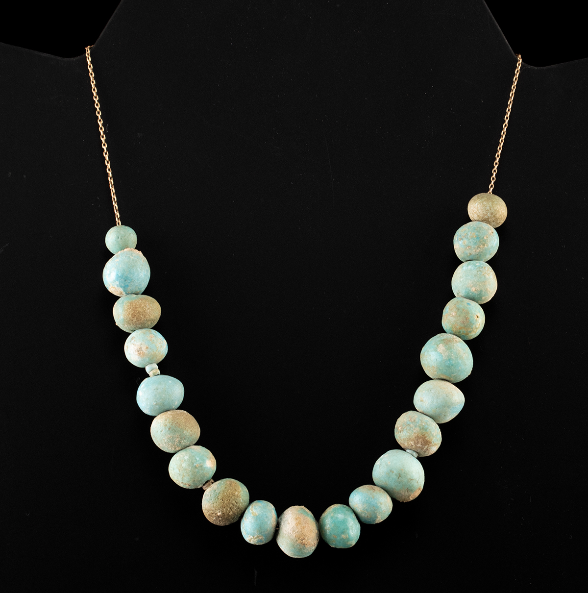 Lot 84a, Auction 4/12/2026: Ancient Cypriot Faience Bead Necklace on 17K Gold Chain