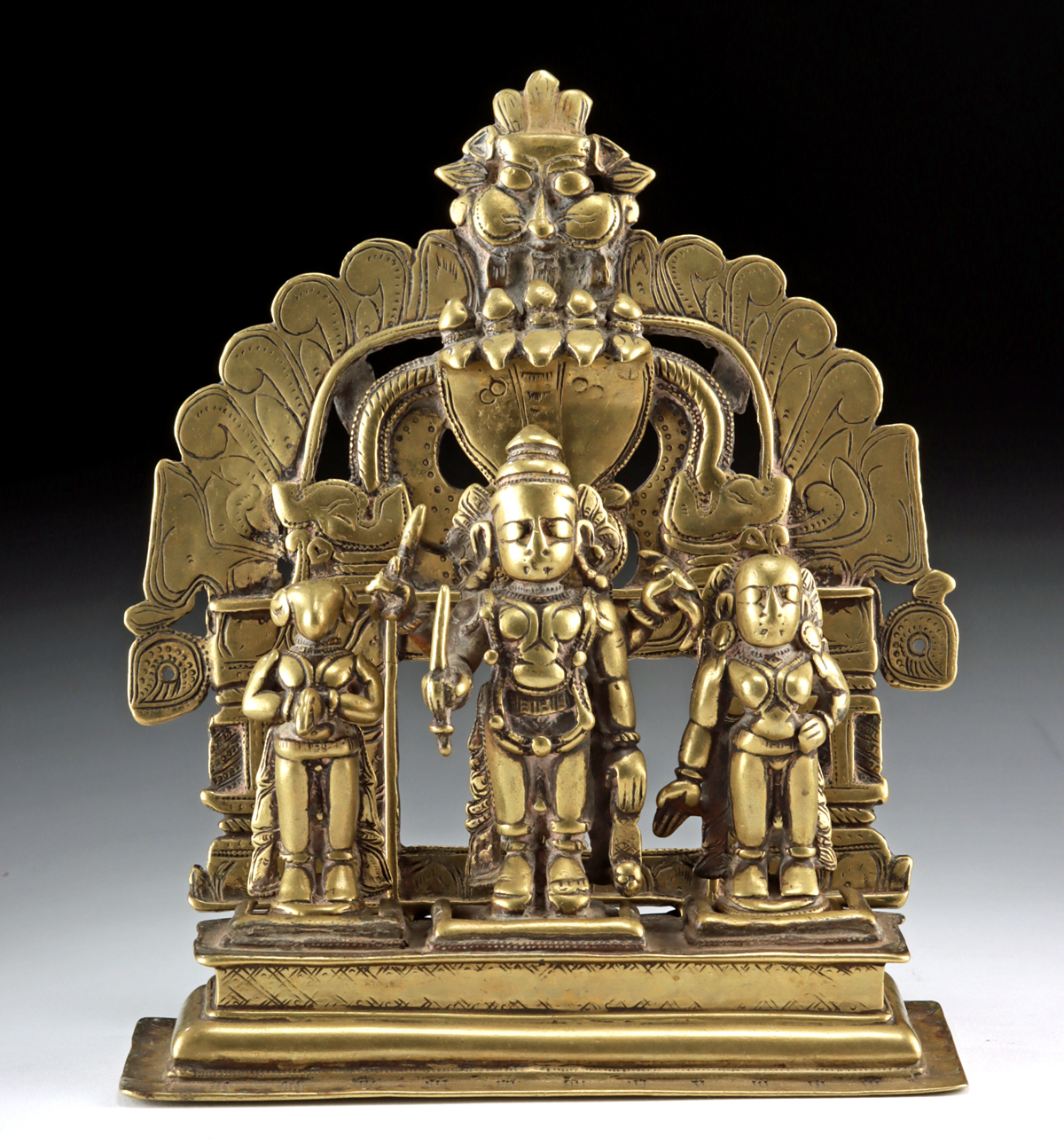 Lot 96a, Auction 4/12/2026: 18th C. Indian Brass Shrine – Virabhadra, Daksha & Sati