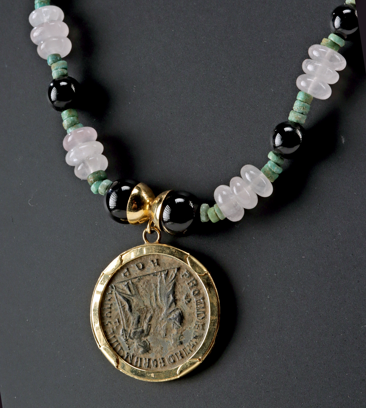 Lot 84, Auction 4/12/2026: Roman Diocletian Coin, Faience & Quartz Bead Necklace