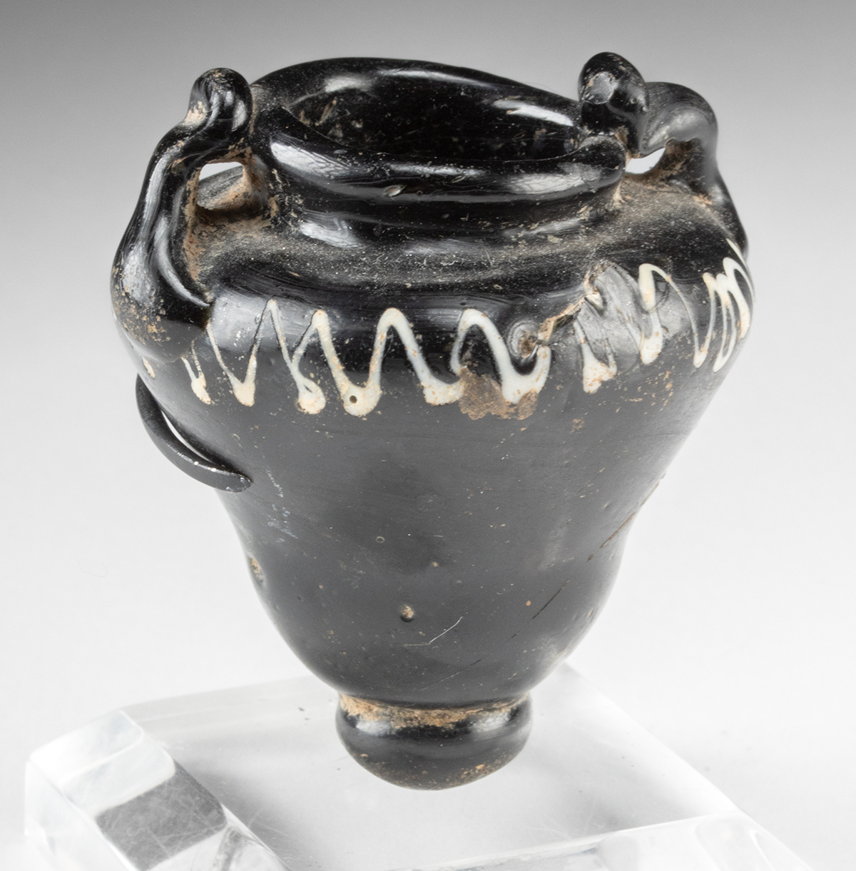 Lot 95a, Auction 4/12/2026: Miniature 10th C. Islamic Glass Amphoriskos w/ Zigzag