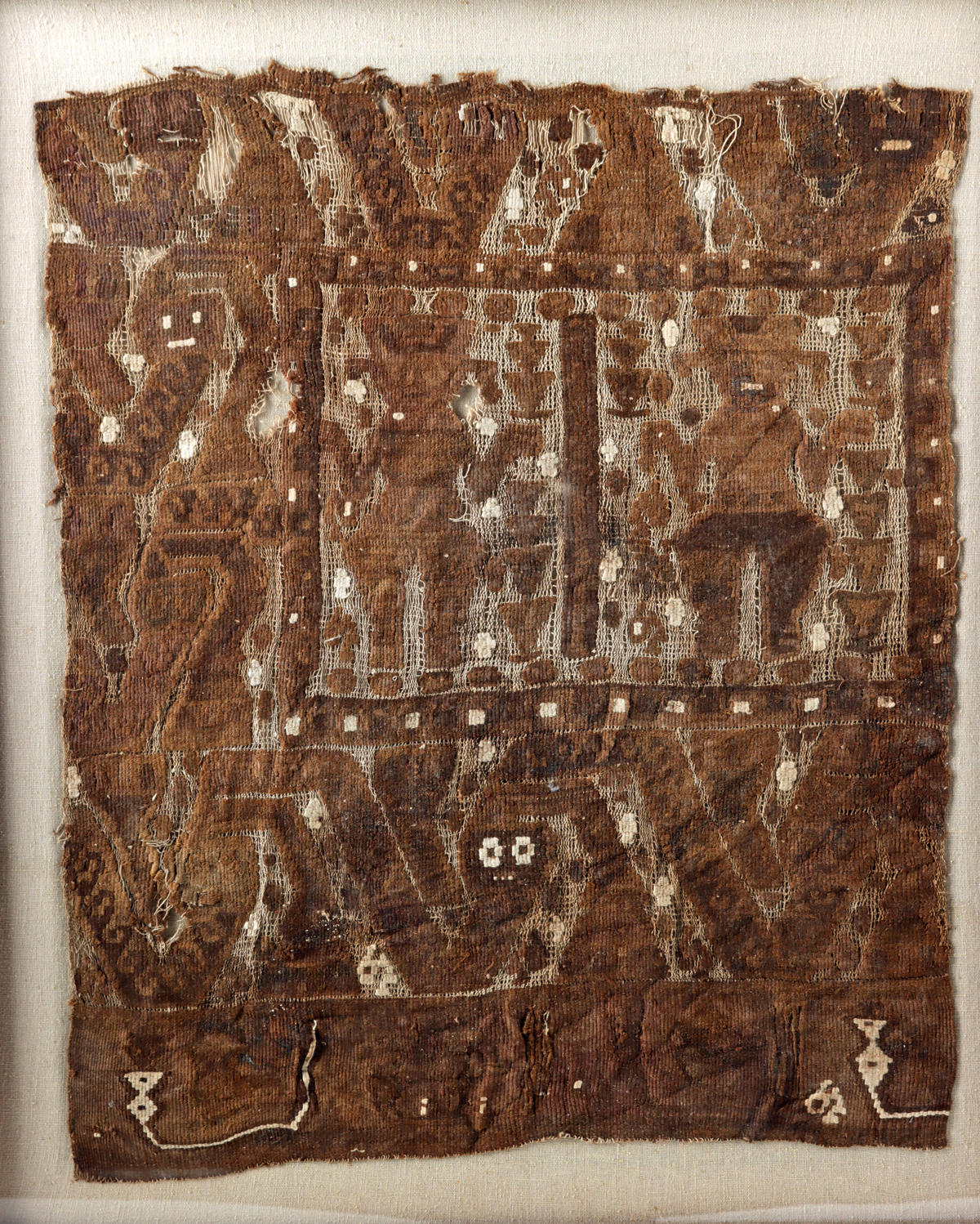 Lot 69, Auction 4/12/2026: Chimu Wool Mantle Panel – Abstract Creature
