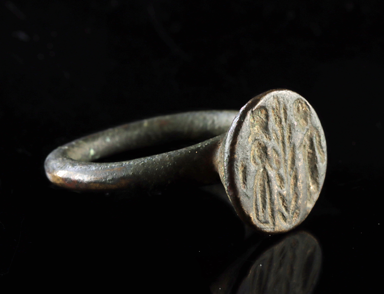 Lot 85b, Auction 4/12/2026: Roman Leded Brass Ring w/ Figures & Wheat Sheaf