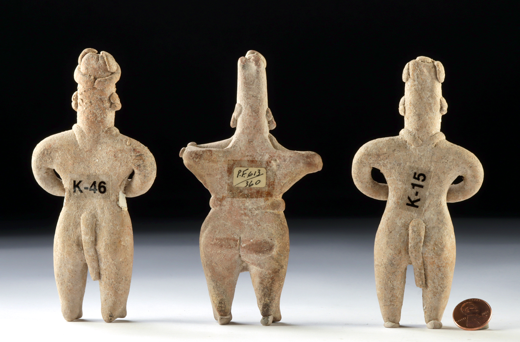 Lot 61a, Auction 4/12/2026: Colima Pottery Male Figures – Trio of Standing Forms