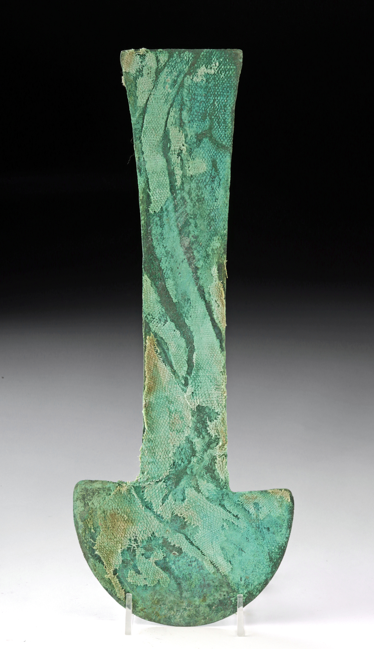 Lot 71a, Auction 4/12/2026: Chimu Copper Tumi w/ Textile Remains from Burial
