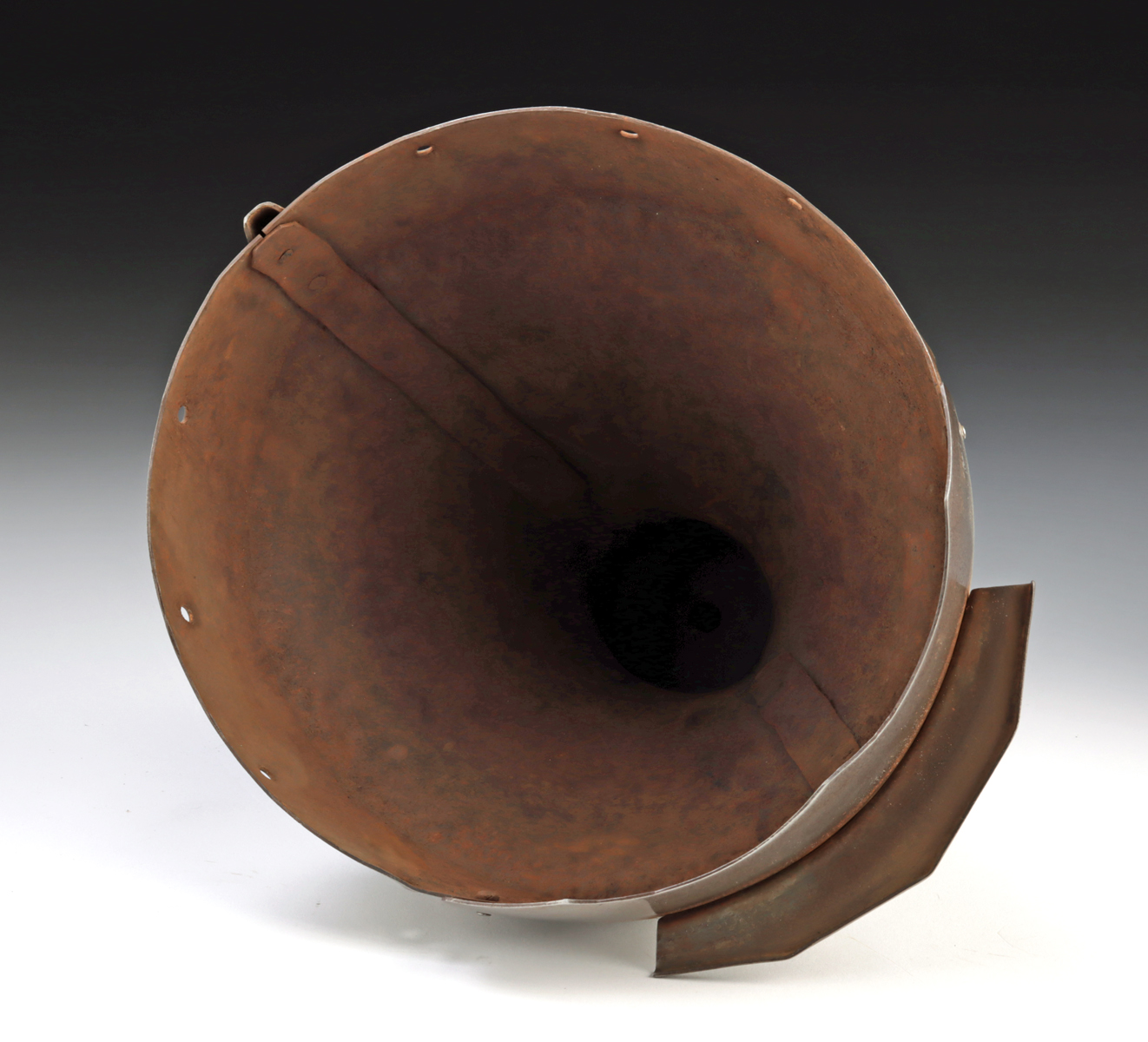 Condition: Excellent condition, with patina and oxidation on interior as expected with age. Exterior is highly polished with minor abrasions and pitting.