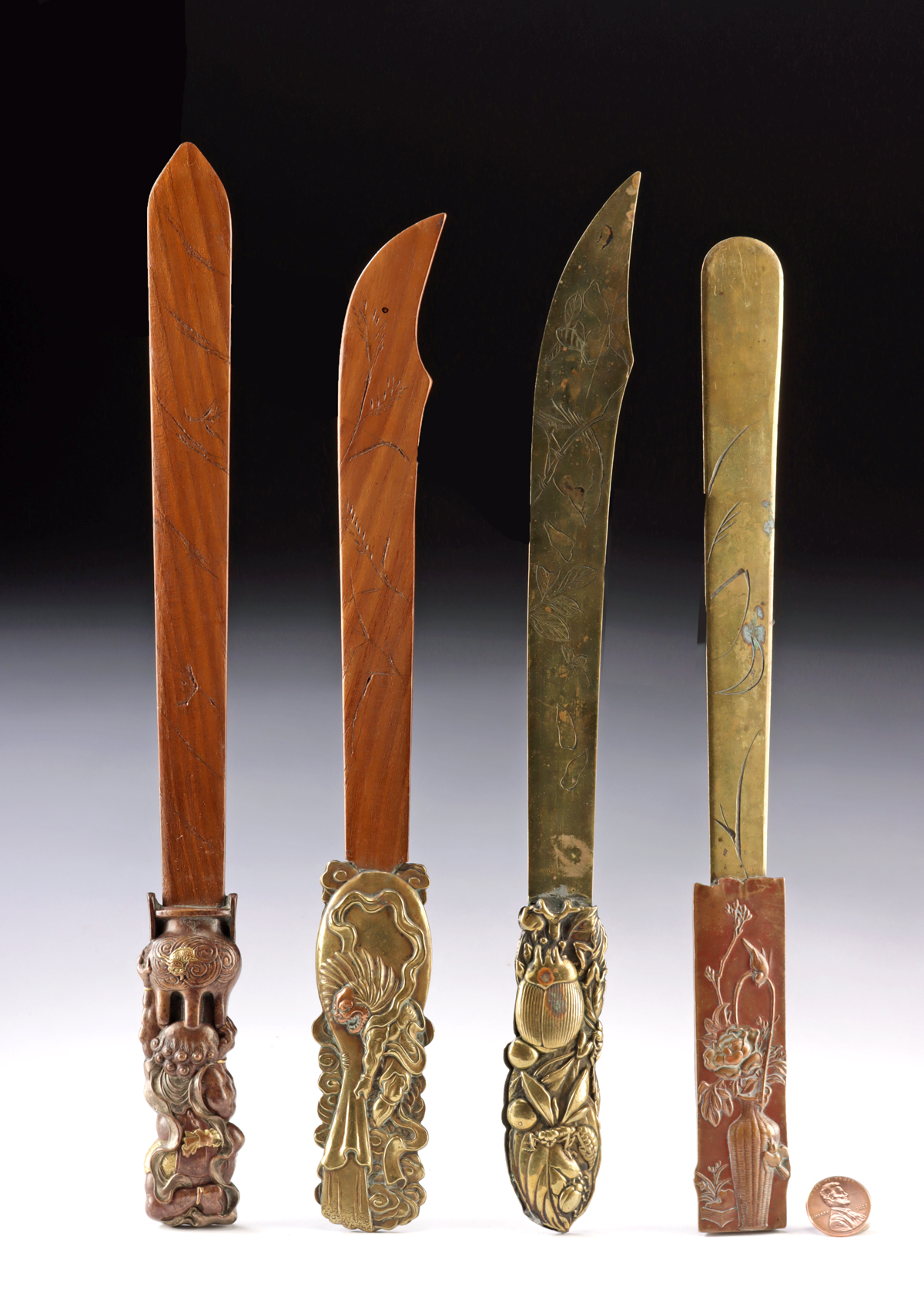 Lot 110a, Auction 4/12/2026: Four 19th C. Japanese Wood & Gilt Copper Paper Knives