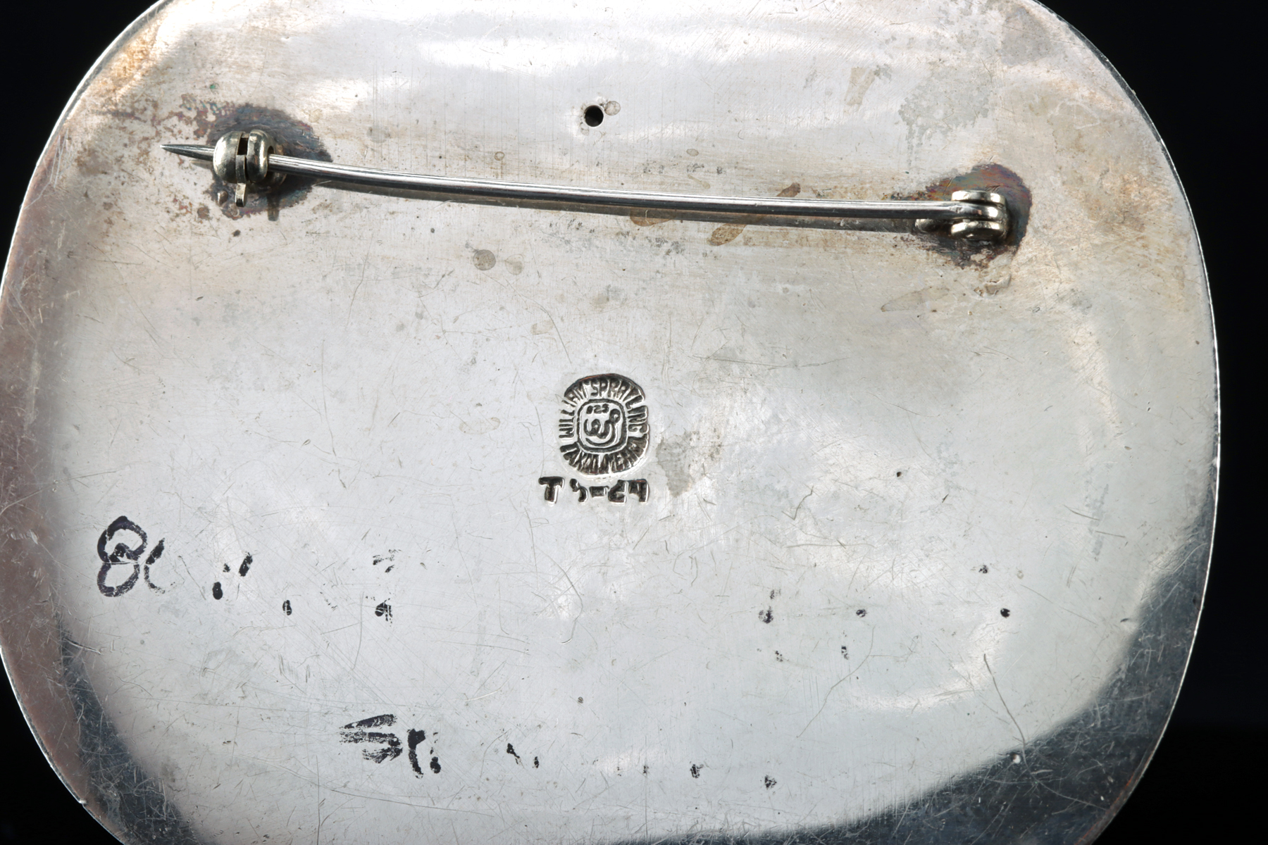 Condition: Light surface wear, but, otherwise, wearable and in very good overall condition. Marked with Spratling hallmark and “TS-24” (Mexican silver quality mark) on the verso.