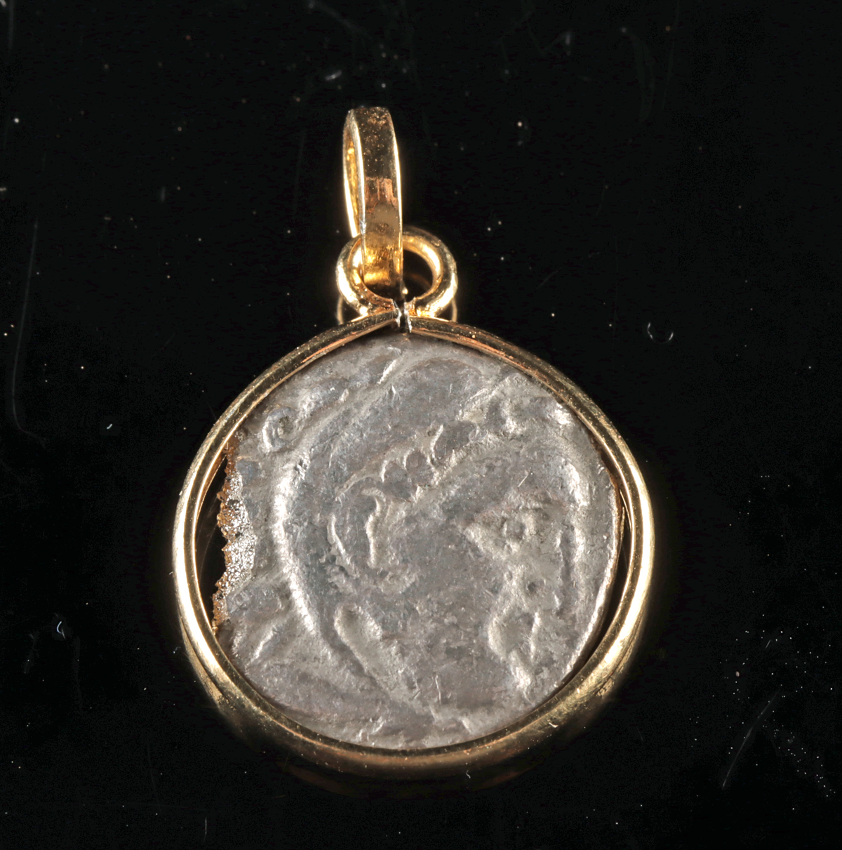 Lot 136, Auction 4/3/2026: Greek Alexander the Great Silver Drachm in Gilt Pendant