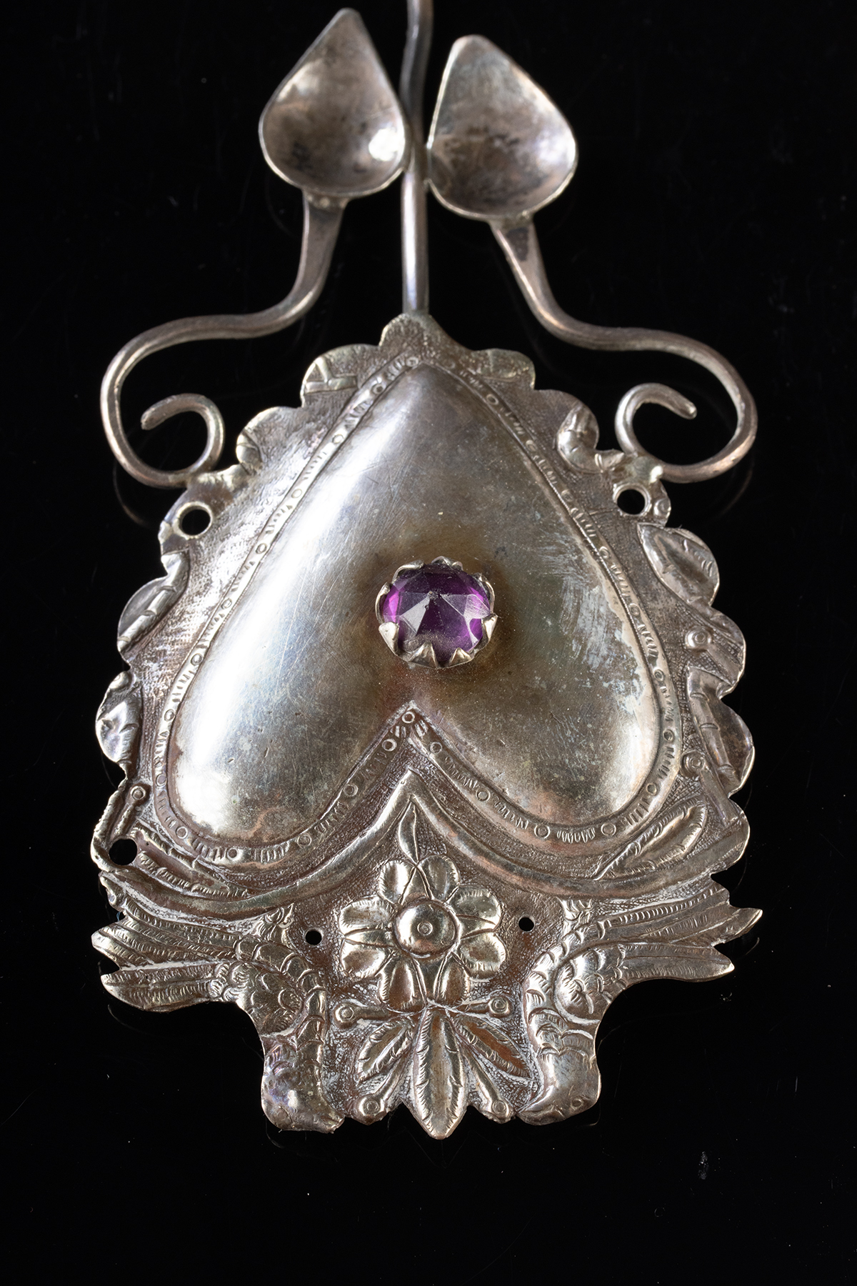 Lot 196d, Auction 4/3/2026: Two Andean Silver Tupu Pins, Heart Shaped & Fish Charm
