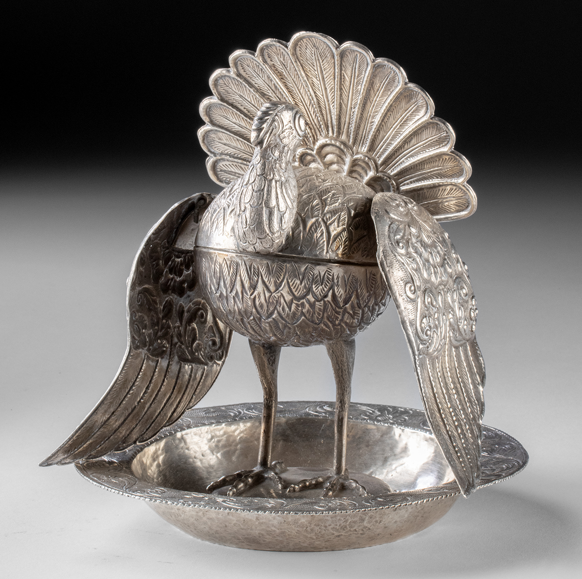 Lot 196a, Auction 4/3/2026: Superb Peruvian Sterling Silver Turkey Sahumador Vessel