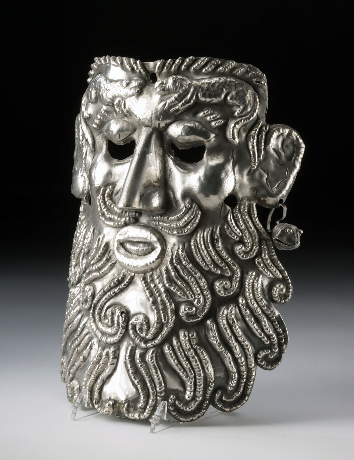 Lot 200a, Auction 4/3/2026: Mexican Guerrero Silver Mask w/ Lizard Motif Bell