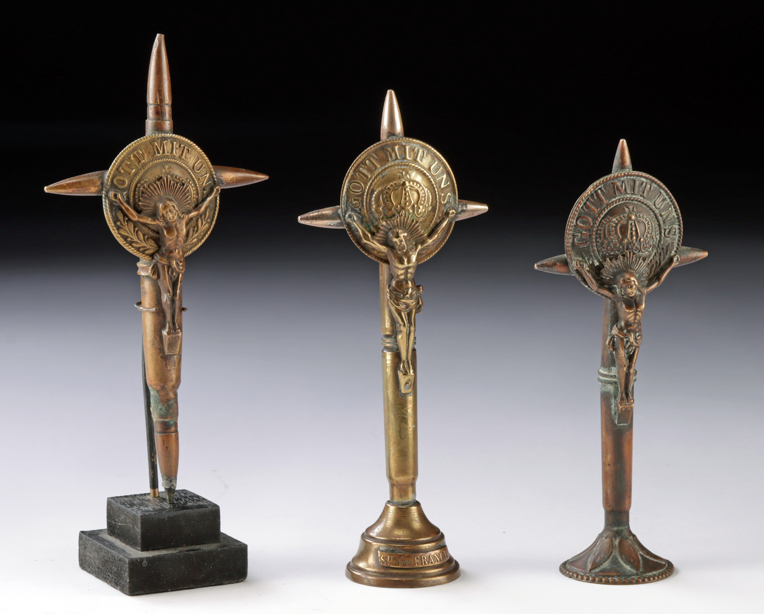 Lot 143a, Auction 4/12/2026: 3 WWI Trench Art Bullet Crucifixes – Gott Mitt Uns
