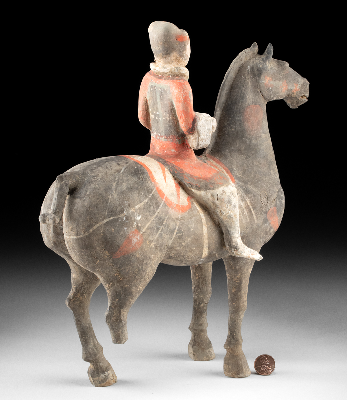 Lot 165, Auction 4/3/2026: Chinese Han Dynasty Polychrome Horse & Rider Figure