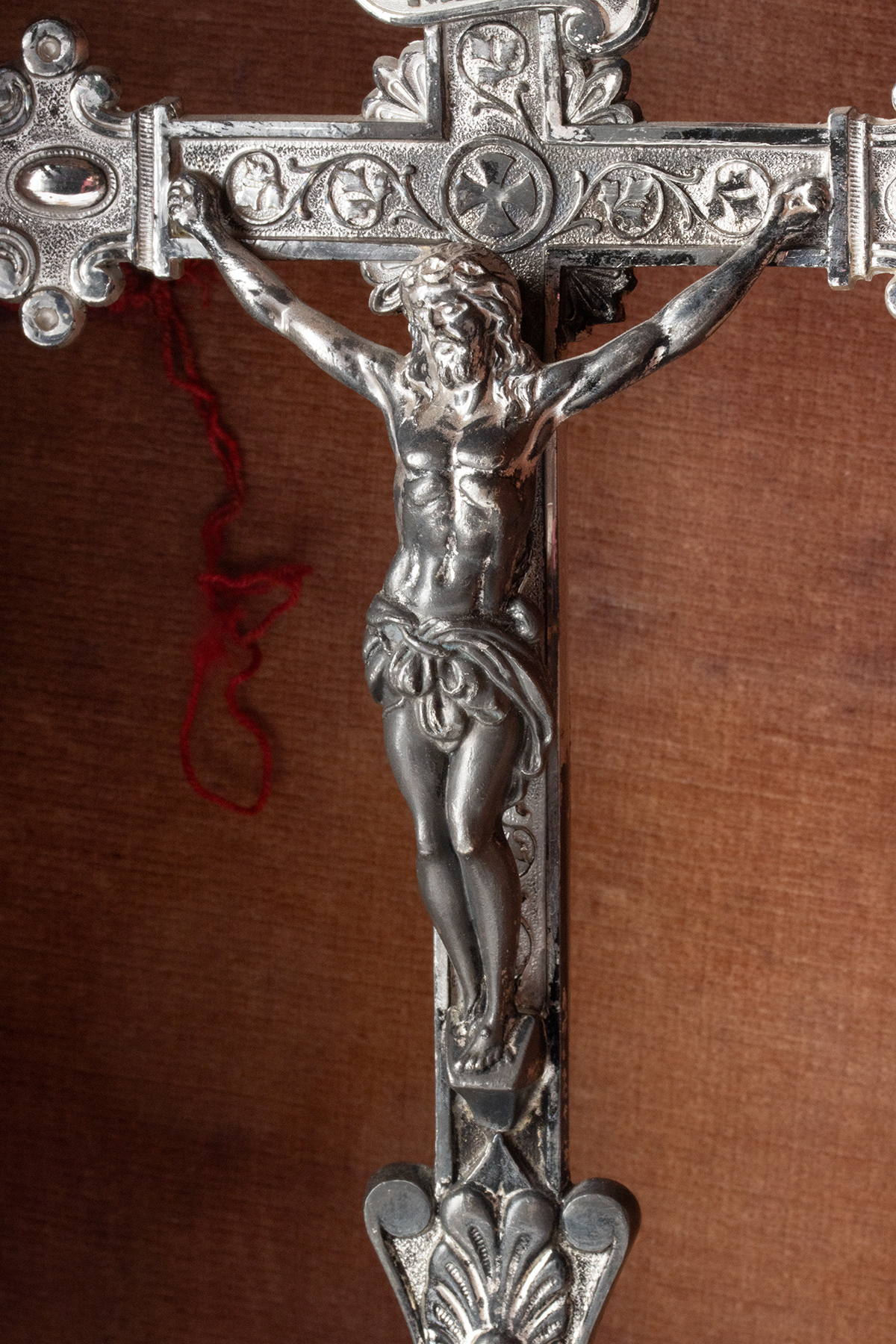 Condition: Mercury pigment. Surface wear throughout with scattered gouges and abrasions to the wood consistent with age and use. Structurally stable for light decorative use, though likely not suitable for heavy weight bearing. Overall presents well with expected age-related wear.