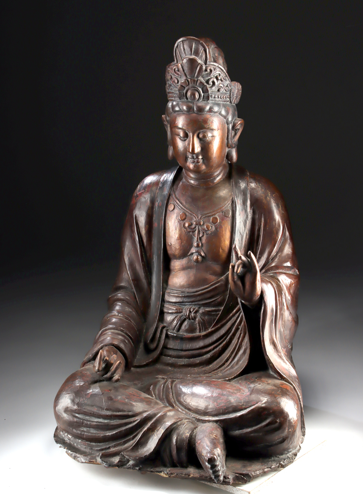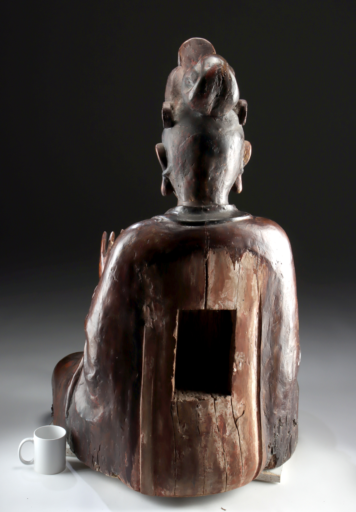 Lot 17a, Auction 3/19/2026: Huge Qing Wood Figure Bodhisattva Mahasthamaprapta