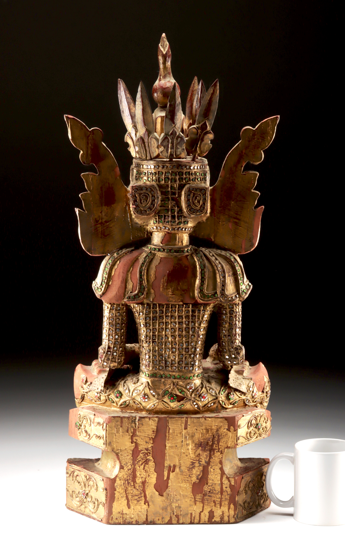 Condition: Spikes of crown are removable. Chipping to gilding and losses to inlays and molding in areas. Good remaining detail.